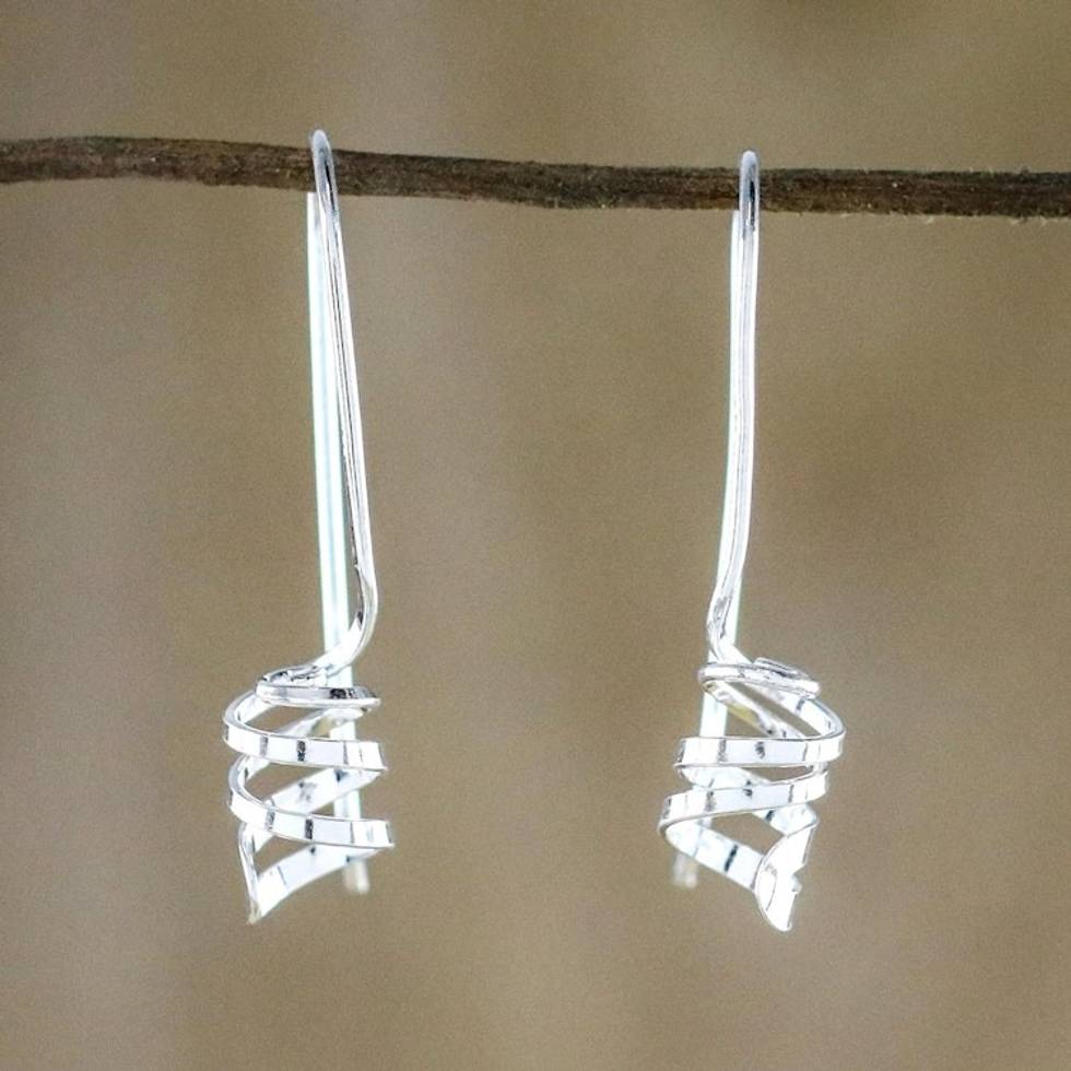 Sterling Silver Spiral Drop Earrings from Thailand 'Cheerful Spirals' Item ID: 2671801471
