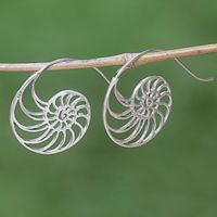 Sterling Silver Spiral Shaped Drop Earrings from Indonesia 'Spiral Nautilus' Item ID: 2669920599