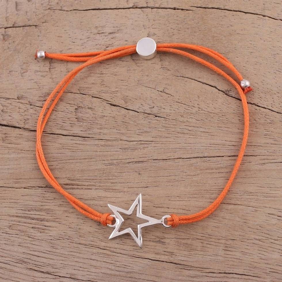 Sterling Silver Star Pendant Bracelet in Orange from India 'Starry Shine in Orange' Item ID: 2671790530