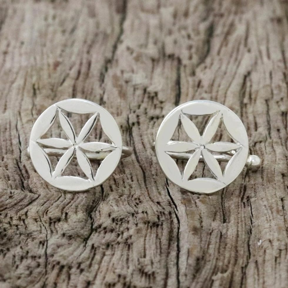 Sterling Silver Star-Shaped Circular Ear Cuffs from Thailand 'Star Petals' Item ID: 2671801462