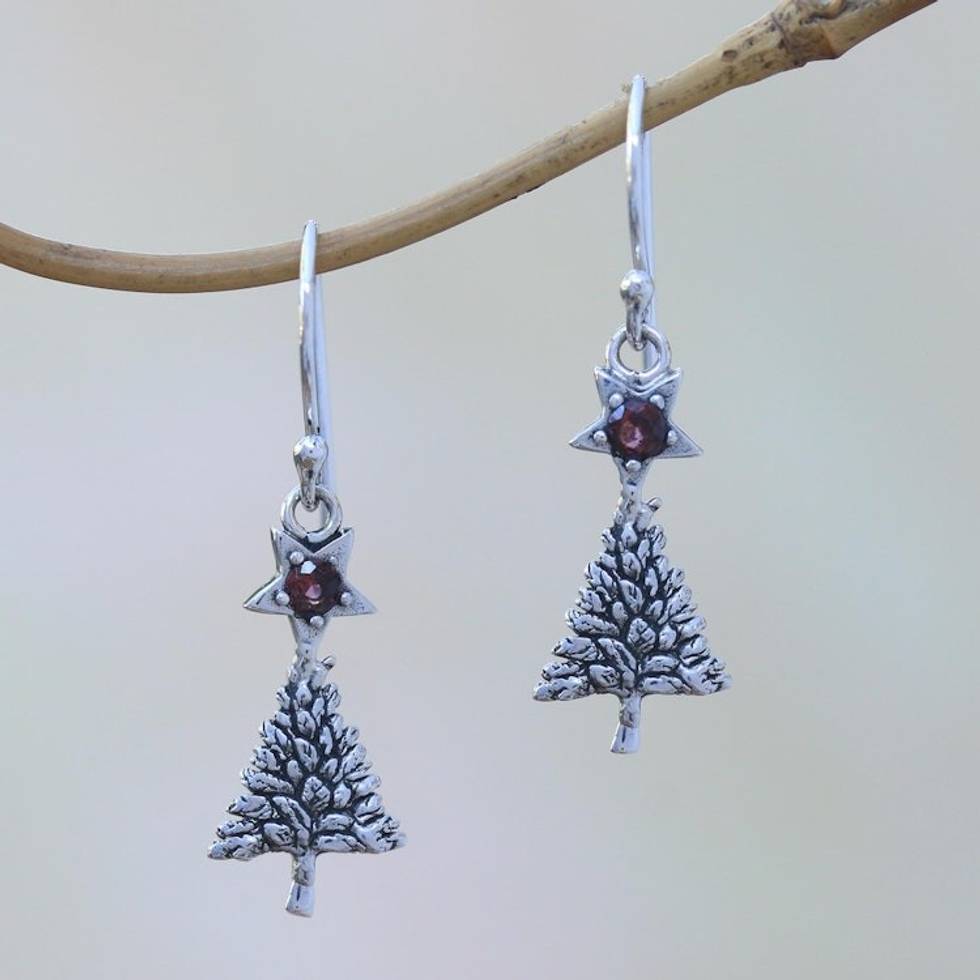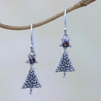 Sterling Silver Star Topped Dangle Earrings 'Garnet Blessing Tree' Item ID: 2671736411