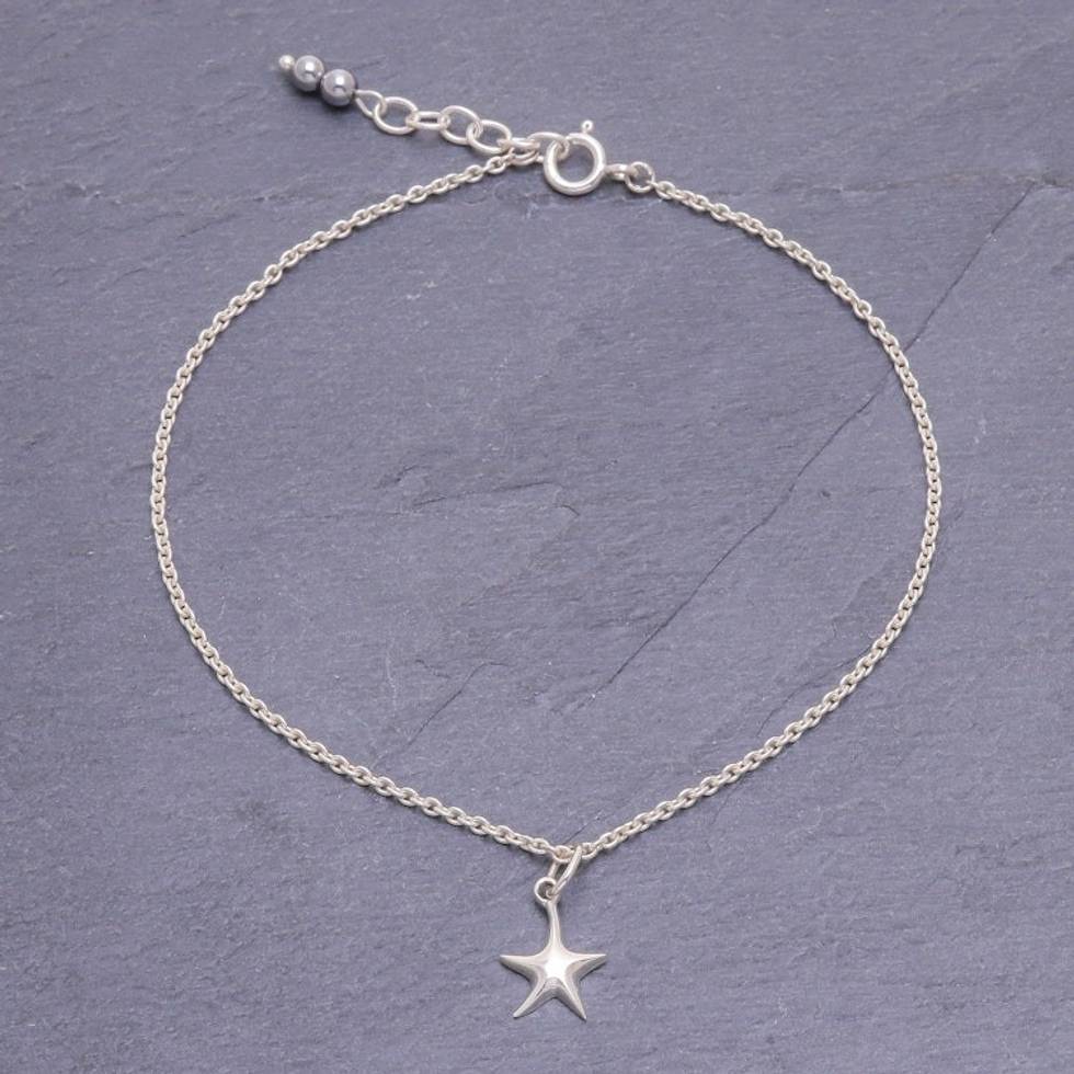 Sterling Silver Starfish Hematite Ankle Bracelet 'Sea Starfish' Item ID: 2669925989