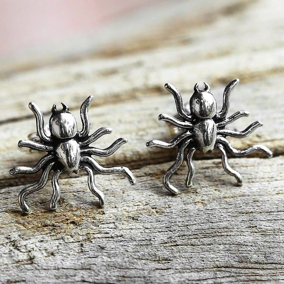 Sterling Silver Stud Earrings Spider Shape from Thailand 'Little Sun Spiders' Item ID: 2669925642