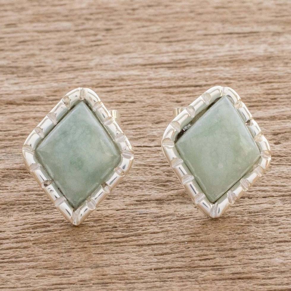 Sterling Silver Stud Earrings with Apple Green Jade Diamonds 'Apple Green Diamond' Item ID: 2671776877