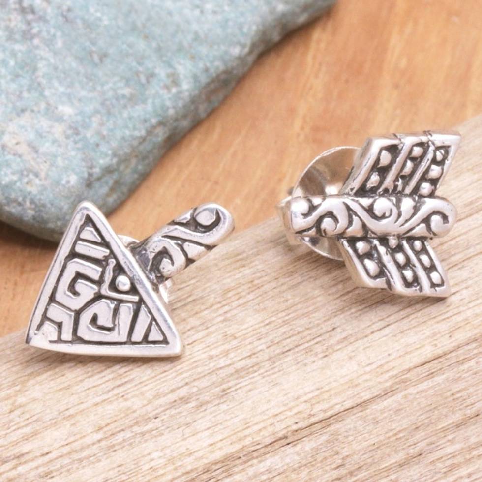 Sterling Silver Stud Earrings with Balinese Motifs 'Trouble Arrow' Item ID: 2671747915