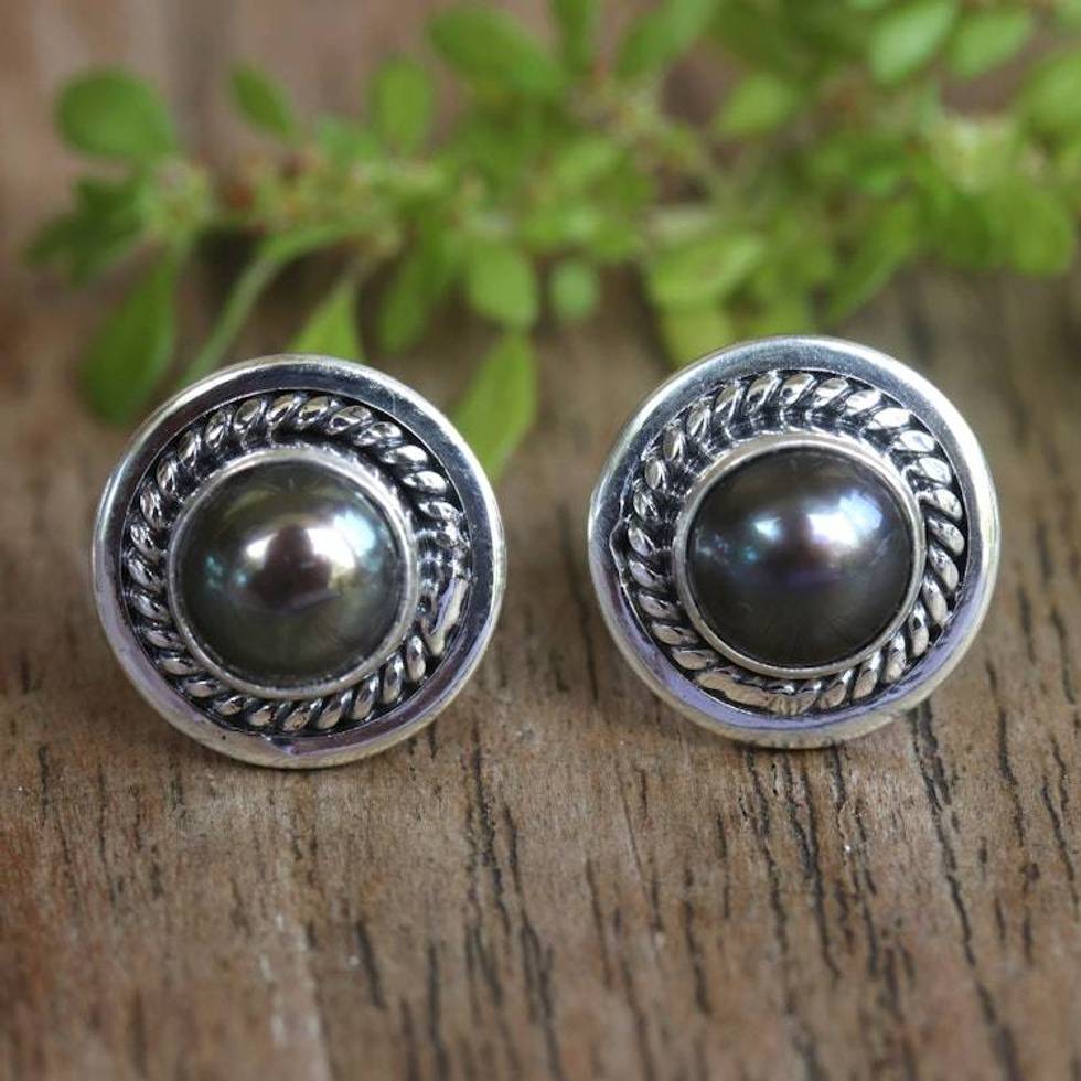 Sterling Silver Stud Earrings with Brown Cultured Pearls 'Perfect Shield' Item ID: 2676659908
