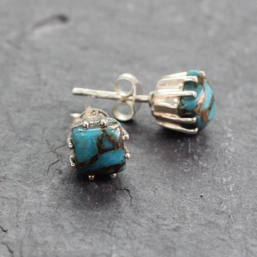 Sterling Silver Stud Earrings with Composite Turquoise 'Ocean Sky' Item ID: 2669924943