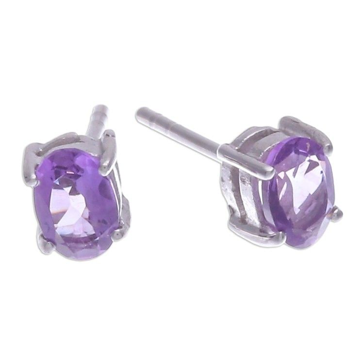 Sterling Silver Stud Earrings with Faceted Amethyst Gems 'Wisdom Maiden' Item ID: 2671798001