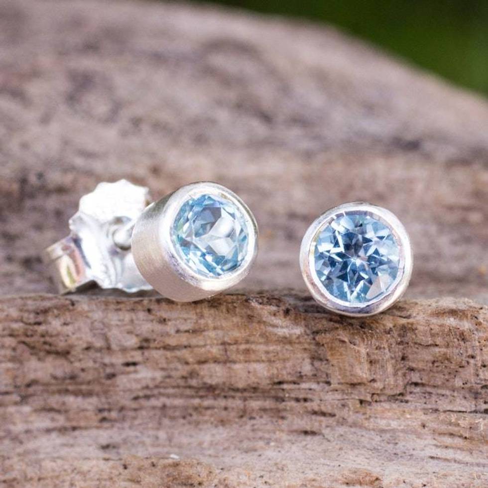 Sterling Silver Stud Earrings with Faceted Blue Topaz 'Light' Item ID: 2676651522