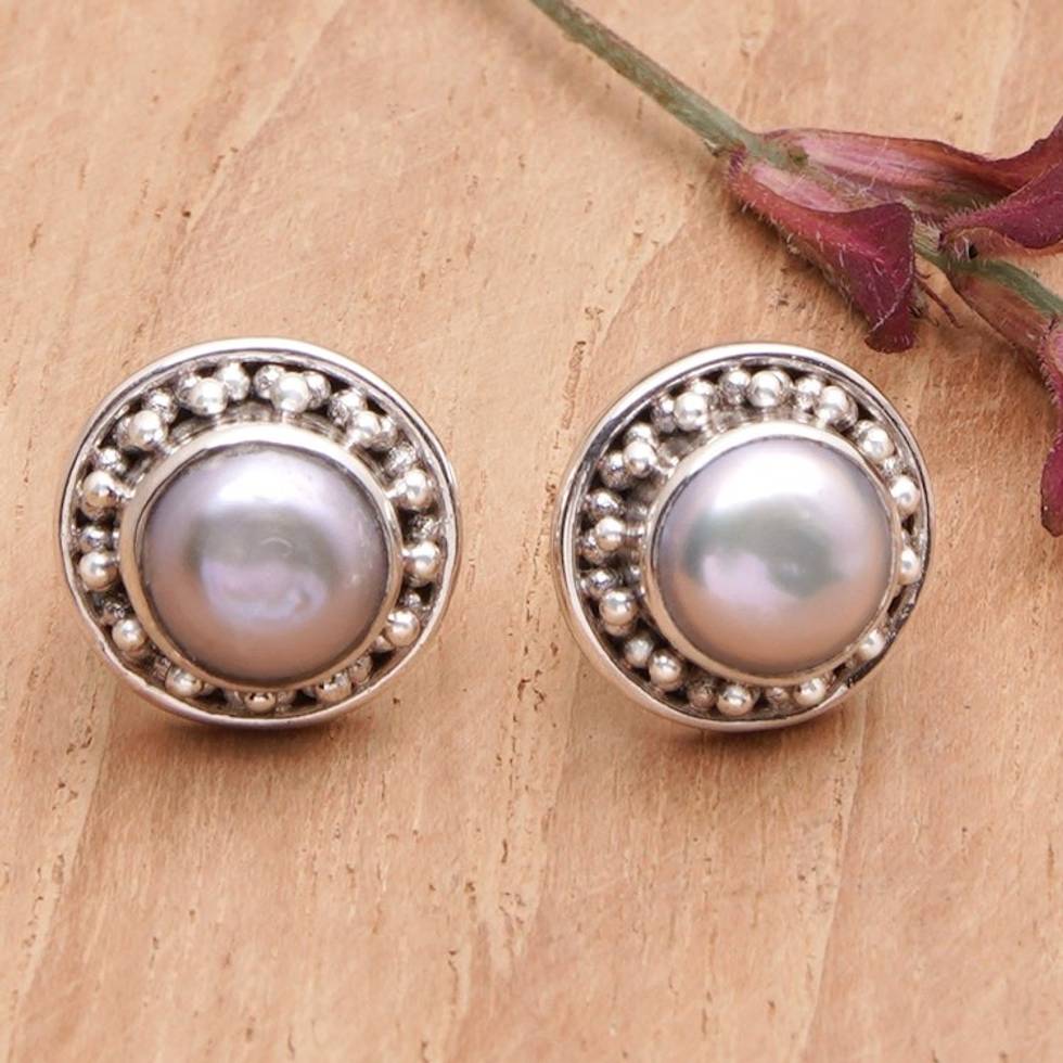 Sterling Silver Stud Earrings with Grey Cultured Pearls 'Lovely Grey' Item ID: 2669920958