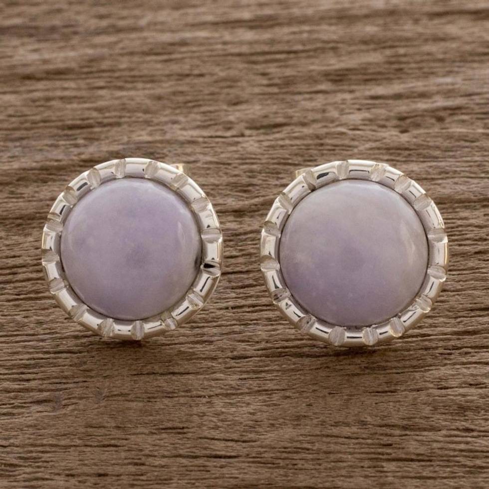 Sterling Silver Stud Earrings with Lilac Jade Circles 'Lilac Moon' Item ID: 2671777305