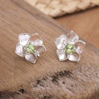 Sterling Silver Stud Earrings with Natural Faceted Peridot 'Prosperity Blooms' Item ID: 2671748864