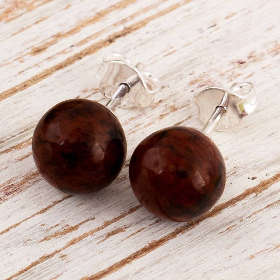 Sterling Silver Stud Earrings with Obsidian Stone from Peru 'Amazonian Soil' Item ID: 2671399806