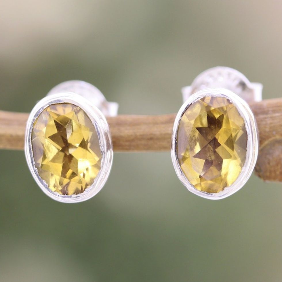 Sterling Silver Stud Earrings with Oval 3-Carat Citrine Gems 'Solar Duet' Item ID: 2671787040