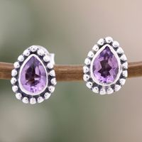 Sterling Silver Stud Earrings with Pear-Shaped Amethyst Gems 'Dazzling Trust' Item ID: 2671786909