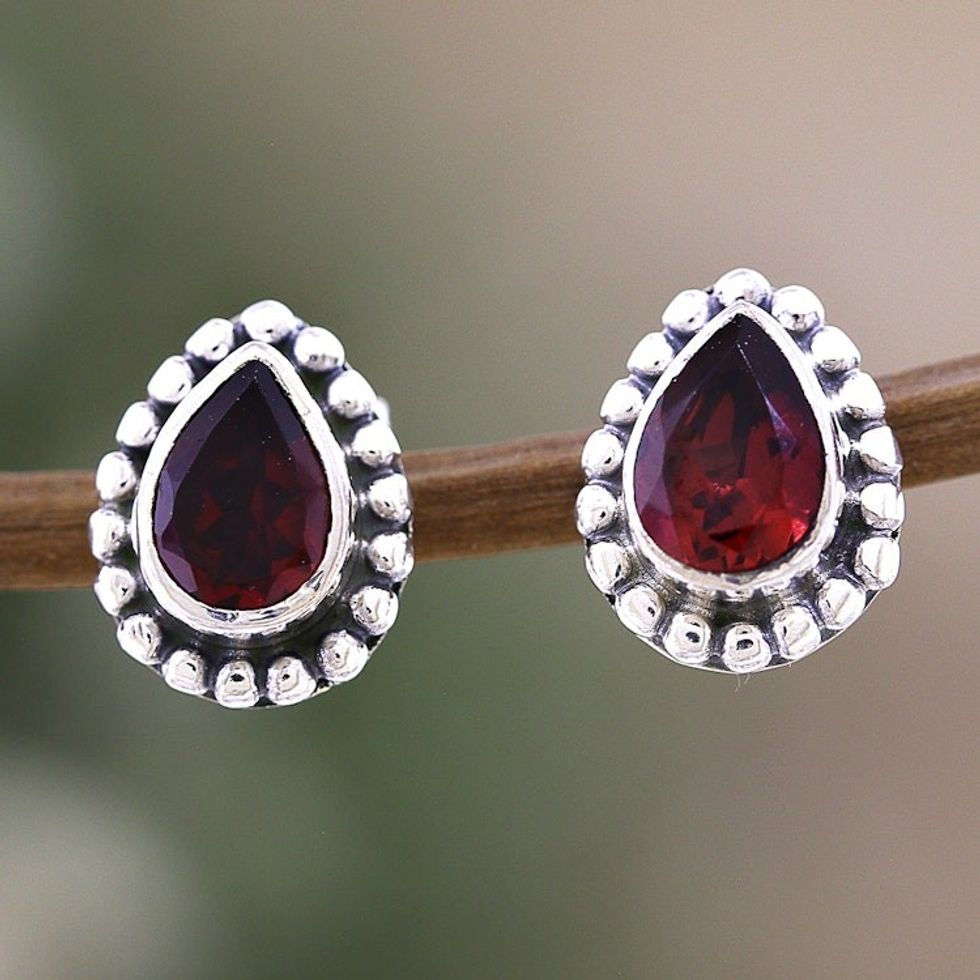 Sterling Silver Stud Earrings with Pear-Shaped Garnet Gems 'Dazzling Passion' Item ID: 2671786933