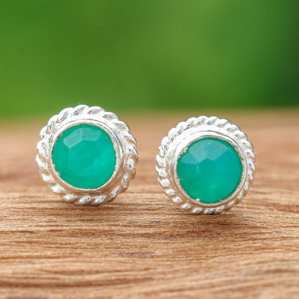 Sterling Silver Stud Earrings with Round Chalcedony Gems 'Balance Elements' Item ID: 2669926447