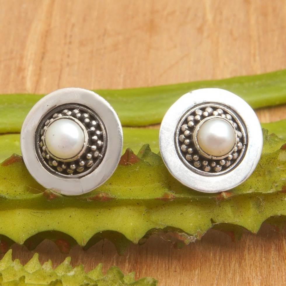 Sterling Silver Stud Earrings with Silver-White Pearls 'Beauty Orbit' Item ID: 2671764886