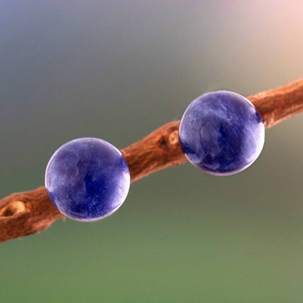 Sterling Silver Stud Earrings with Sodalite Stone from Peru 'Marine Universe' Item ID: 2671697820