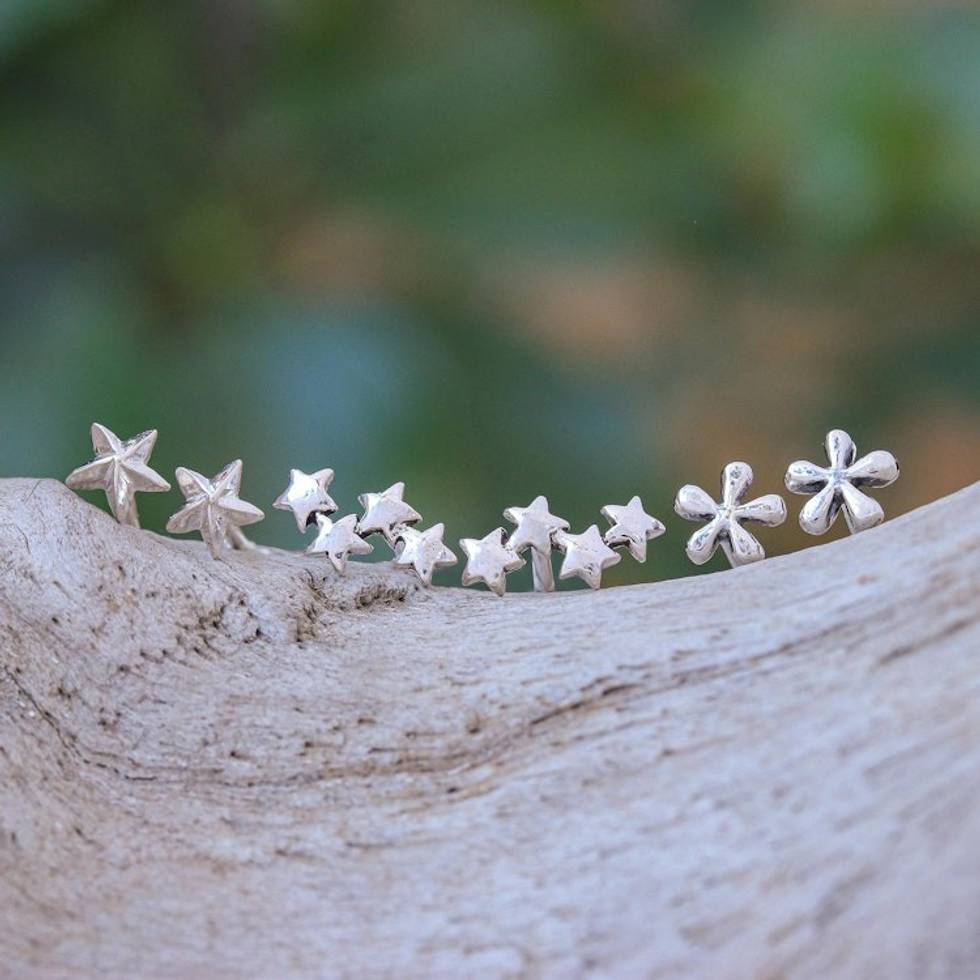 Sterling Silver Stud Earrings with Star Motif Set of 3 'Seeing Stars' Item ID: 2669926547