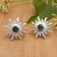 Sterling Silver Sun Button Earrings with Green Quartz Gems 'Green Sunlight' Item ID: 2671764916