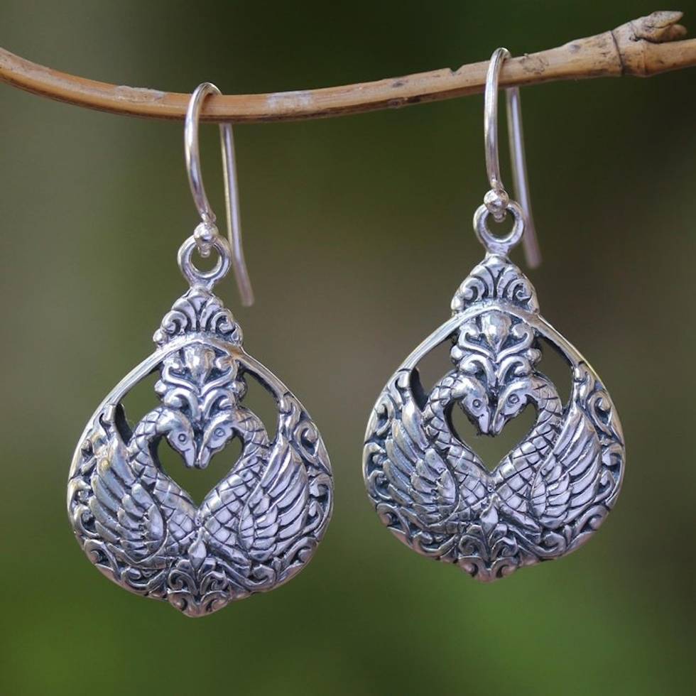 Sterling Silver Swan Dangle Earrings from Bali 'Loving Swans' Item ID: 2671736403