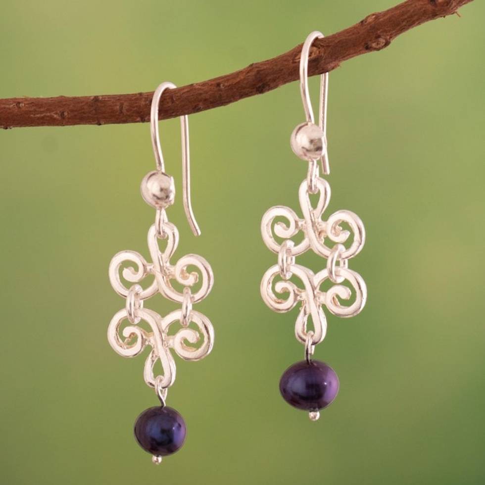 Sterling Silver Swirl Dangle Earrings with Cultured Pearls 'Chic Splendor' Item ID: 2671698056