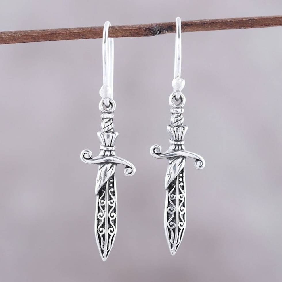 Sterling Silver Sword Dangle Earrings from India 'Protective Swords' Item ID: 2671792816