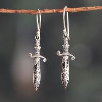 Sterling Silver Sword-Shaped Dangle Earrings from India 'Sword Majesty' Item ID: 2671817720