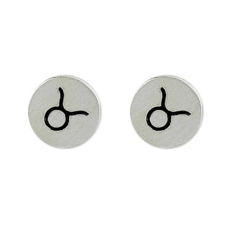 Sterling Silver Taurus Stud Earrings from Thailand 'Satin Taurus' Item ID: 2676650359