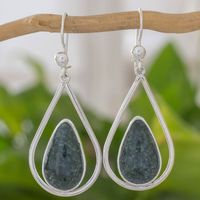 Sterling Silver Teardrop Earrings with Dark Green Jade 'Dark Green Droplet of Life' Item ID: 2671777892
