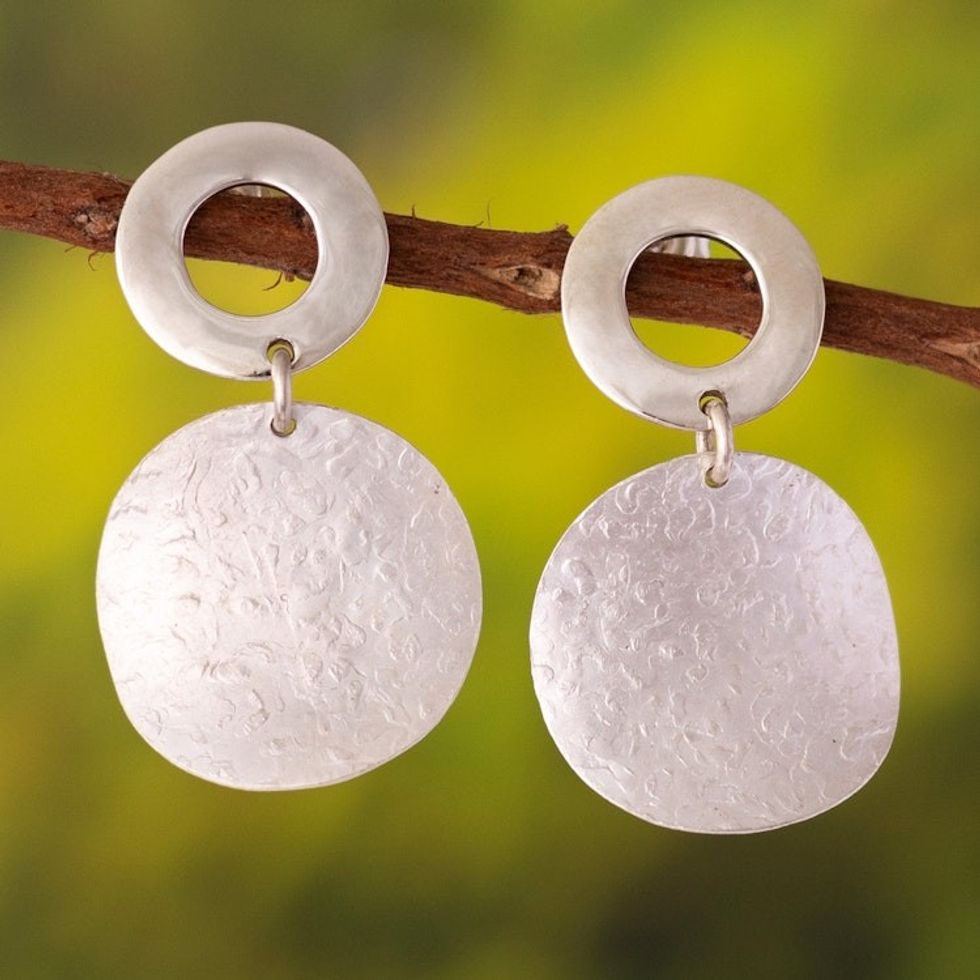 Sterling Silver Textured Disc Dangle Earrings from Peru 'Halo on the Moon' Item ID: 2671691003