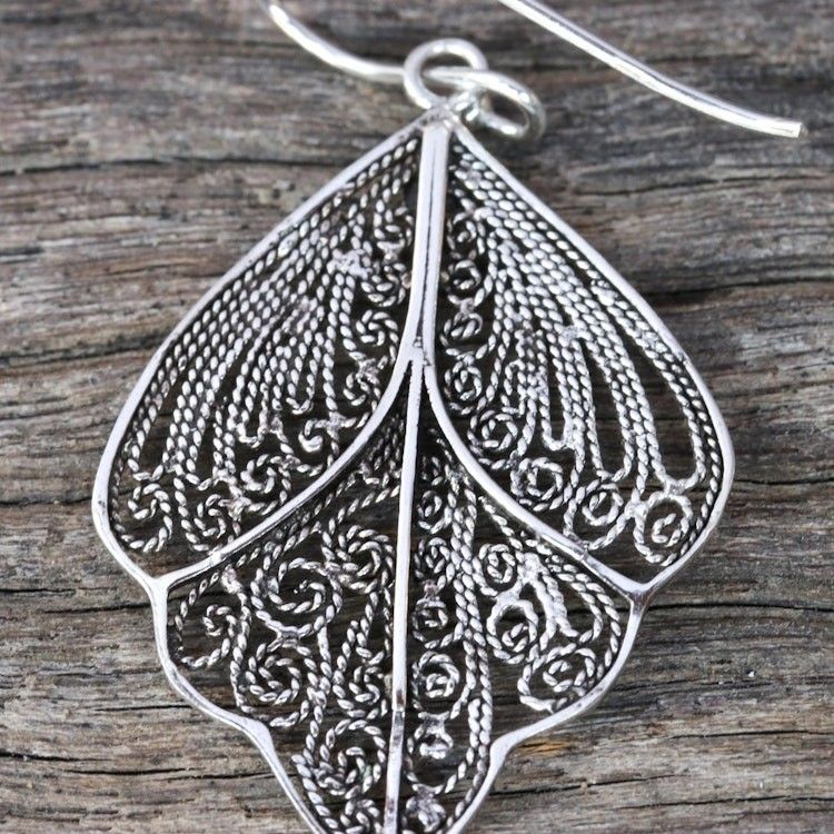 Sterling Silver Thai Filigree Spiral Dangle Earrings 'Sleeping Butterflies' Item ID: 2671801694