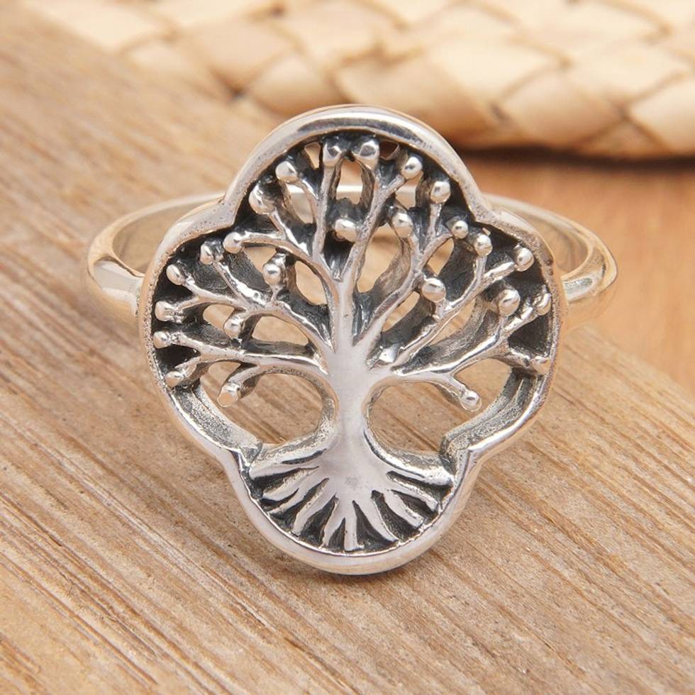 Sterling Silver Tree Cocktail Ring with Openwork Accents 'Revered Tree' Item ID: 2671764370