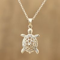 Sterling Silver Turtle Pendant Necklace from India 'Harmonious Turtle' Item ID: 2669924886