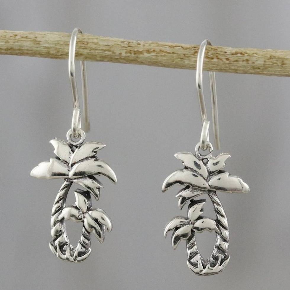 Sterling Silver Twin Palm Dangle Earrings from Thailand 'Paradise Palms' Item ID: 2671801450