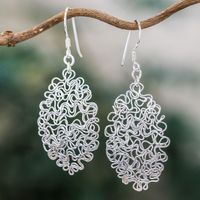 Sterling Silver Twisted and Coiled Wire Oval Dangle Earrings 'Opulent Chaos' Item ID: 2671799125