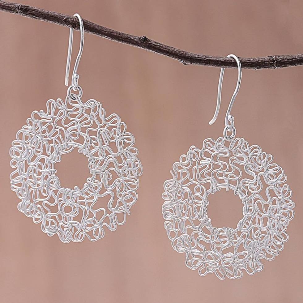 Sterling Silver Twisted Wire Wreath Dangle Earrings 'Freedom Wreath' Item ID: 2671798612