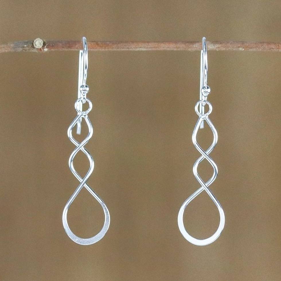 Sterling Silver Twisting Dangle Earrings from Thailand 'Droplet Twist' Item ID: 2669928104