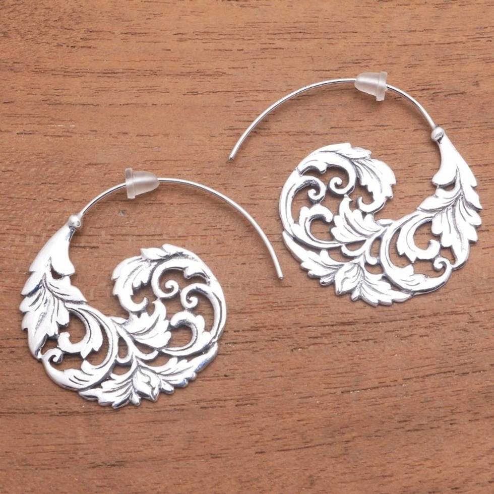 Sterling Silver Vine Half-Hoop Earrings from Bali 'Garden Waves' Item ID: 2671821814