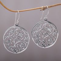 Sterling Silver Vine Motif Dangle Earrings from Bali 'Vine Rings' Item ID: 2671735223