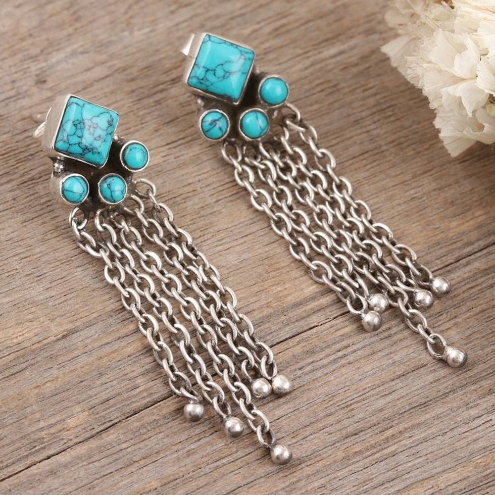 Sterling Silver Waterfall Earrings from India 'Shining Rain' Item ID: 2671788920