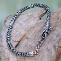 Sterling Silver Wheat Chain Bracelet with Dragon Head Clasp 'Dragon Tale' Item ID: 2669921315