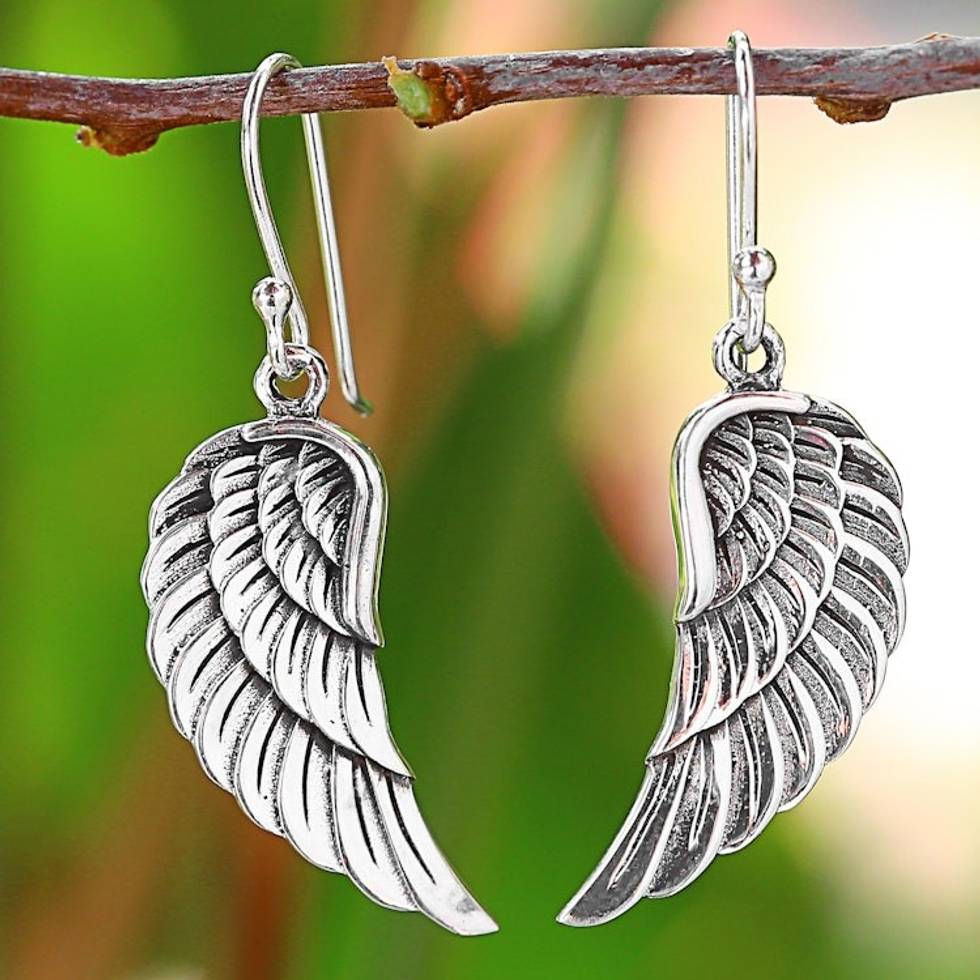 Sterling Silver Wing Dangle Earrings from Thailand 'Loving Wings' Item ID: 2669925743