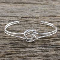 Sterling Silver Wire Cuff Bracelet with Center Knot 'Happy Together' Item ID: 2676649714