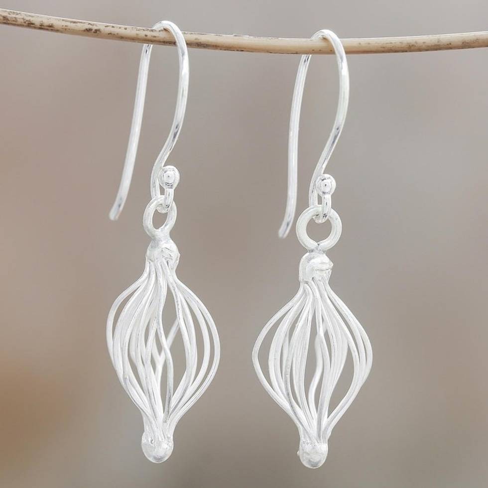 Sterling Silver Wire Dangle Earrings from Thailand 'Beautiful Cage' Item ID: 2671799517