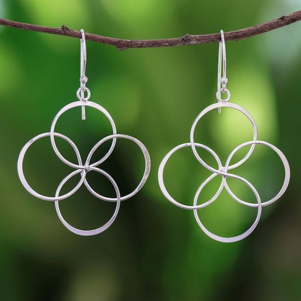 Sterling Silver Wire Dangle Earrings from Thailand 'Quartet Intersections' Item ID: 2671799027