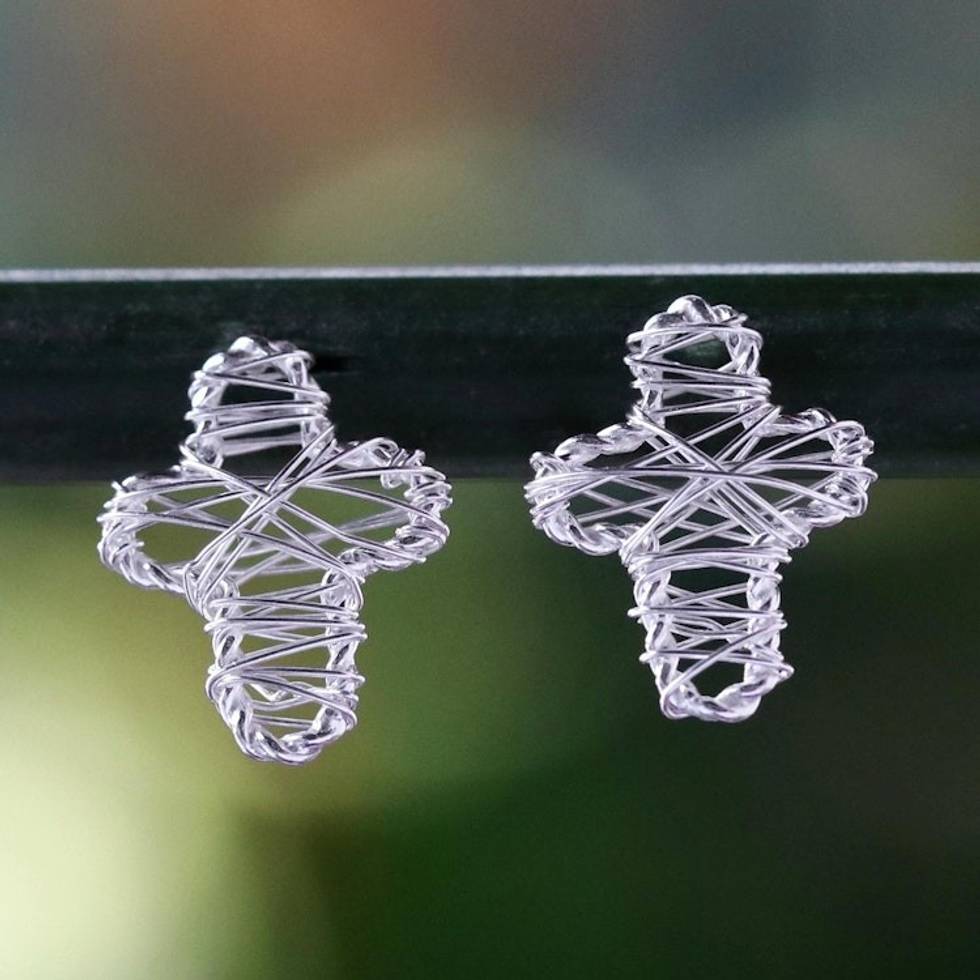 Sterling Silver Wrap Cross Stud Earrings Crafted in Thailand 'Cross Wrap' Item ID: 2671801721