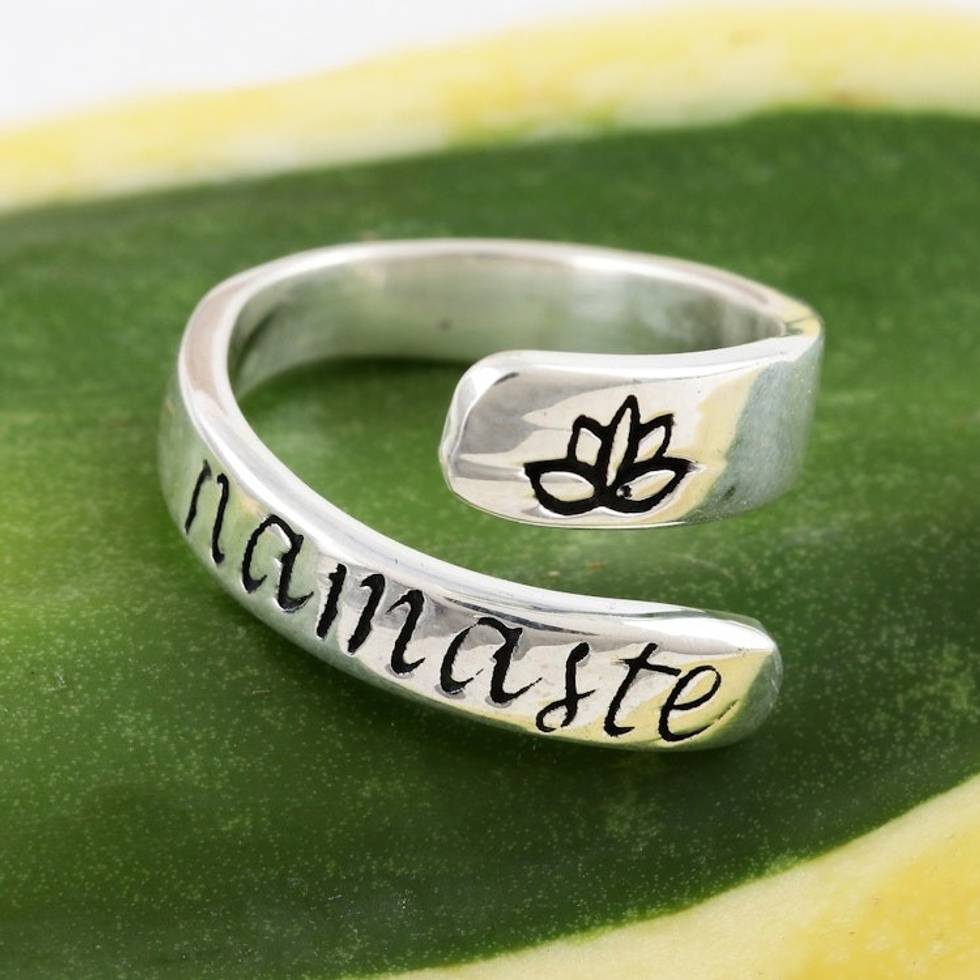 Sterling Silver Wrap Ring Namaste Lotus Inscription 'Lotus Namaste' Item ID: 2671667347