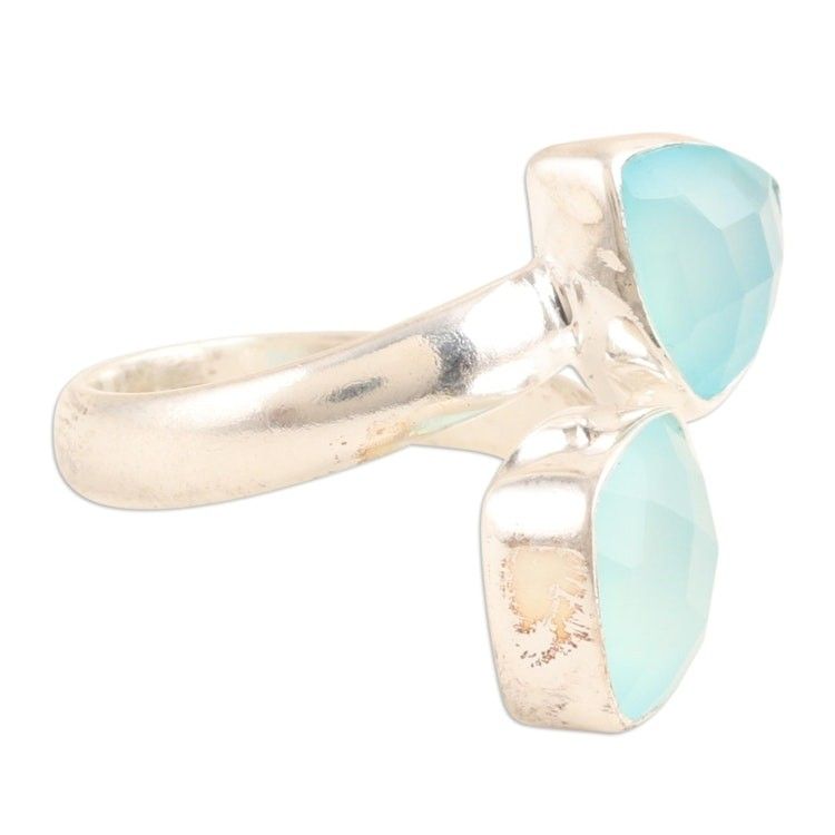 Sterling Silver Wrap Ring with Eight-Carat Chalcedony Gems 'Peace Horizon' Item ID: 2671786689